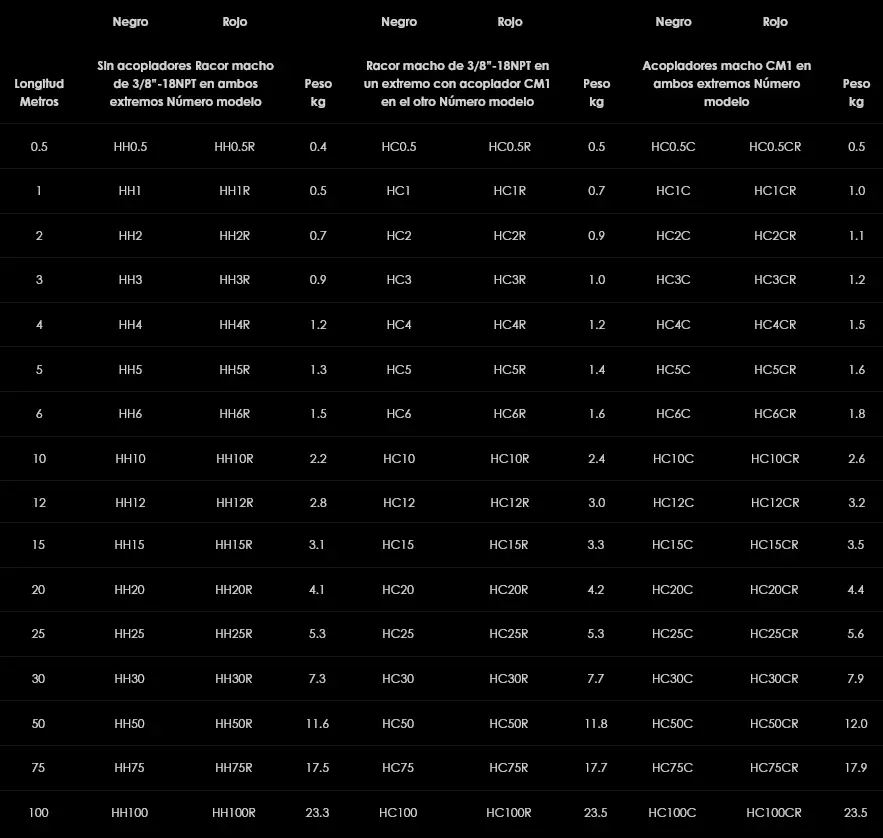 Las mangueras hidráulicas de alta presión ofrecen una conexión vital, segura y de gran calidad para su equipo hidráulico. Disponibles en rojo y negro y suministradas completas con un aliviador protector de presión de diseño ergonómico en ambos extremos, las mangueras de alta presión de Hi-Force son adecuadas para presiones de trabajo de hasta 700 bar con un factor de seguridad de 4 : 1.