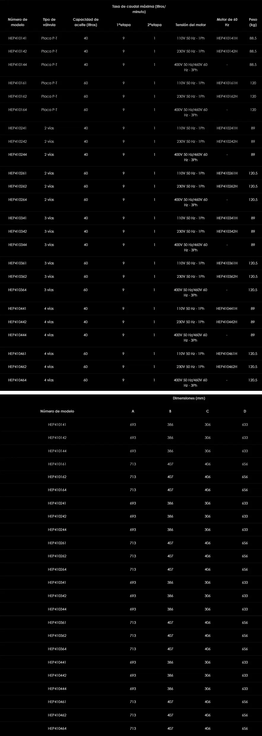 La gama de bombas hidráulicas de accionamiento eléctrico de dos etapas de la serie HEP4 ofrece un caudal de 9 litros / min a baja presión y 1 litro / min a alta presión hasta 700 bar, lo que las hace adecuadas para su uso con cilindros de alto tonelaje o carrera larga. Disponibles en una selección de opciones de motor de 110, 230 o 400/460 voltios, las bombas HEP4 están equipadas con motores eléctricos totalmente cerrados, enfriados por ventilador y de bajo ruido, lo que las hace ideales para un funcionamiento silencioso tanto en espacios interiores como en exteriores. Todos los modelos están equipados con una válvula de alivio de presión externa para un fácil ajuste de la presión de trabajo hasta la configuración máxima de 700 bar.