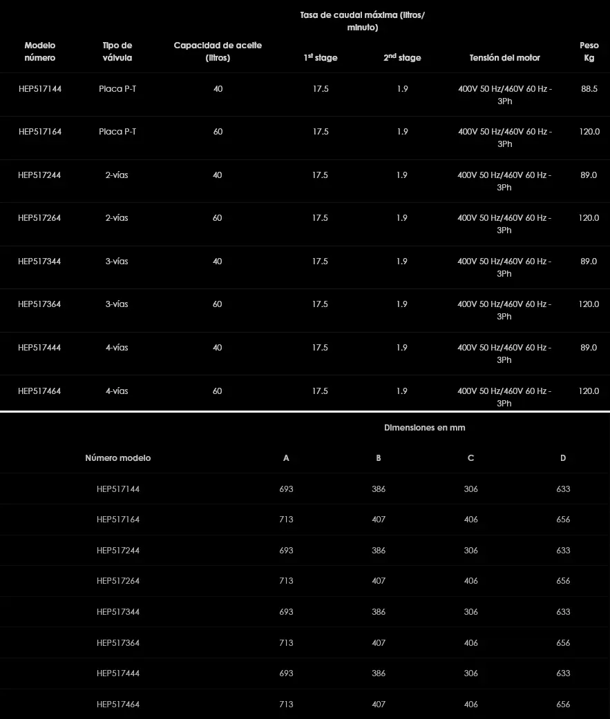 Las electrobombas hidráulicas HEP5 dos etapas ofrece la mayor velocidad de caudal de Hi-Force. Su velocidad de caudal a baja presión es de 17.5 l/min con cambio automático a una magnífica velocidad de caudal a alta presión de 1.9 l/min. La HEP5 es como las HEP2 y las HEP3 pero con un motor de 2,2 kW de alta velocidad y resistente, lo que la convierte en la bomba idónea para todas las aplicaciones de trabajos pesados que requieran un alto caudal y un uso intensivo por largos períodos de tiempo.