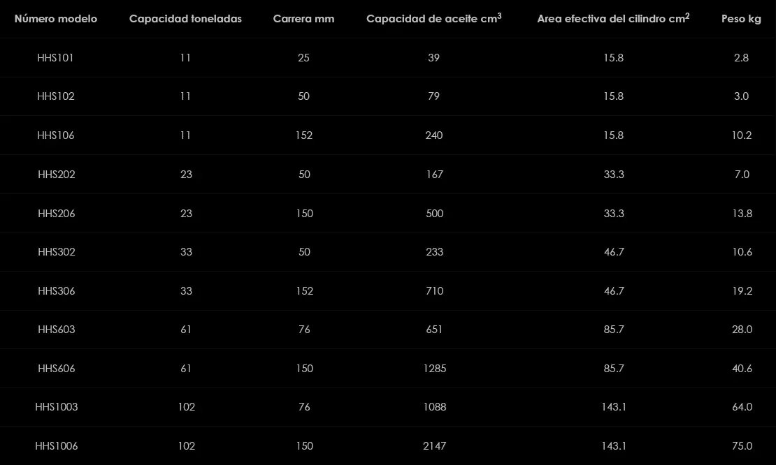 Los cilindros HHS de simple efecto y pistón hueco son tremendamente versátiles para operaciones en las que se utilizan herramientas, operaciones de mantenimiento y de tensado. Diseñados específicamente con un pistón hueco para permitir el paso de un vástago o cable por toda la longitud del cilindro en operaciones en las que se necesita una fuerza de tracción, la serie HHS se usa en gran medida en operaciones de postensado y pretensado al igual que en las pruebas de diversos sistemas de anclaje unidos o mecánicos. Los cilindros HHS pueden utilizarse además para operaciones generales de elevación cuando se les incorporan asientos del vástago del pistón intercambiables de acero endurecido.