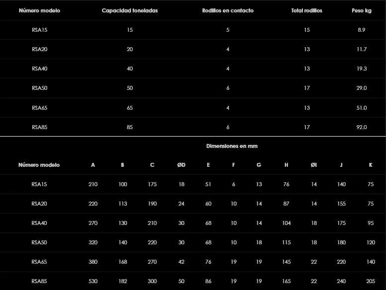 La serie RSA de patines transportadores para cargas pesadas es idónea para el transporte de cargas pesadas como transformadores, generadores, turbinas y maquinaria. Disponibles en capacidades de 15 a 85 toneladas.